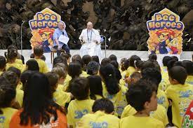 Papa Francisco conversa con niños de campamento de verano y recibe pulsera de San Juan Bosco y beata Eusebia Palomino