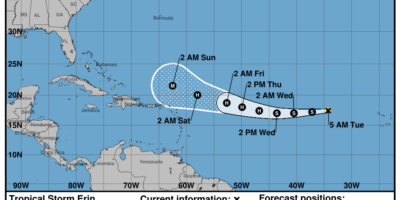 Centro Nacional de Huracanes emite aviso de tormenta tropical Erin en el Atlántico