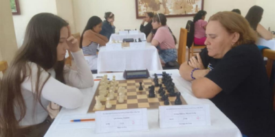 Tres ajedrecistas abrazadas en la cima por corona de ajedrez en Cuba