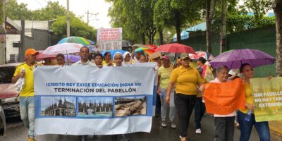 Bajo lluvias padres marchan para demandar terminación de pabellón de la secundaria en Escuela Cristo Rey
