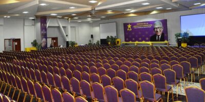 Escenario preparado para la reunión del Comité Central del PLD este domingo a partir de las 10.00 a.m. Antes se reunirá el C.P.