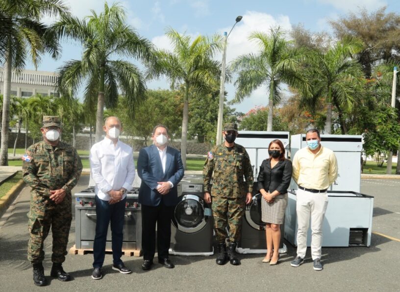 Santo Domingo, R. D., 16 de junio, 2021.- La Presidencia de la República donó al Ministerio de Defensa (MIDE) y al Servicio Nacional de Salud (SNS), 126 equipos industriales, entre ellos refrigeradores, estufas, lavadoras, secadores y cilindros de gas propano.