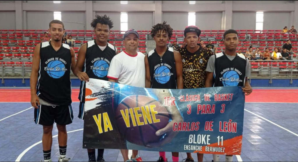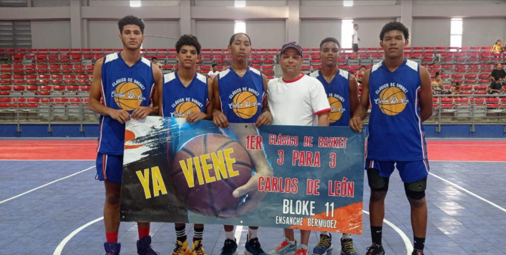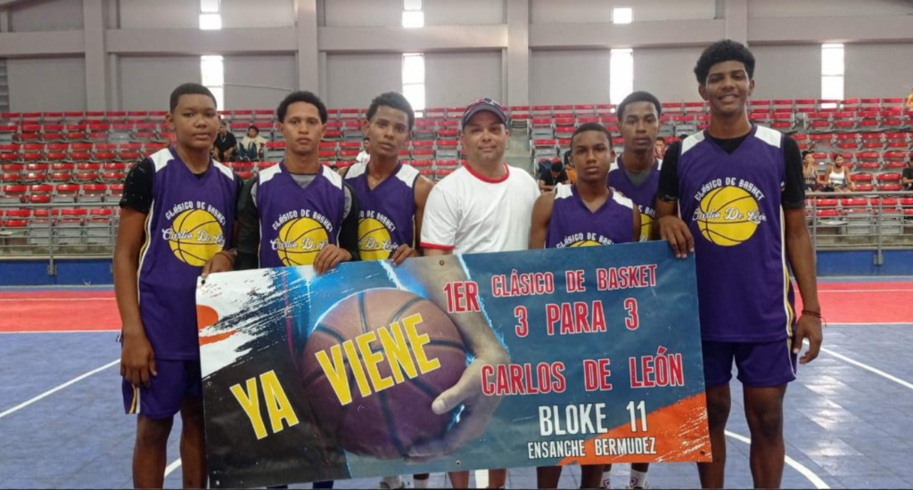 Santiago.-Inicio con rotundo éxito la noche de este miércoles el “Primer Clásico de Baloncesto 3 para 3 Carlos de León en el populoso sector del Ensanche Bermúdez, con la participación de 8 equipos y más de 50 atletas de diferentes edades teniendo como escenario el Polideportivo Adriano (Nani) Marrero de dicho sector, la justa tiene una especial dedicatoria al propio Carlos de León por sus grandes y valiosos aportes a la comunidad que lo vio nacer.