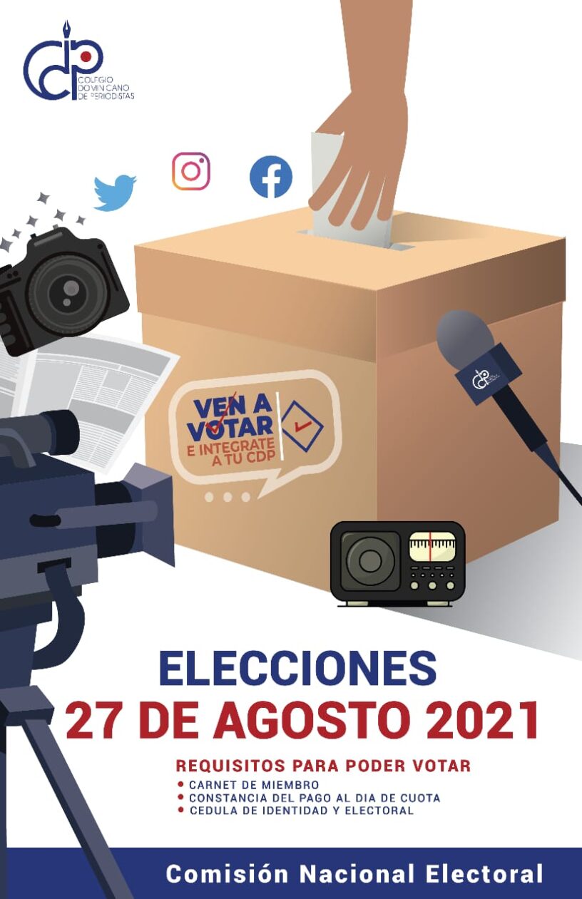 Santo Domingo, R. D., 9 de agosto, 2021.- Los movimientos Dos Generaciones y Convergencia pidieron a la Comisión Nacional Electoral del Colegio Dominicano de Periodistas (CDP), que dirige el catedrático Luís Pérez, aclarar cuanto antes que los colegiados que no estén al día en el pago de sus cuotas, podrán votar con la gracia tradicional de 100 pesos.