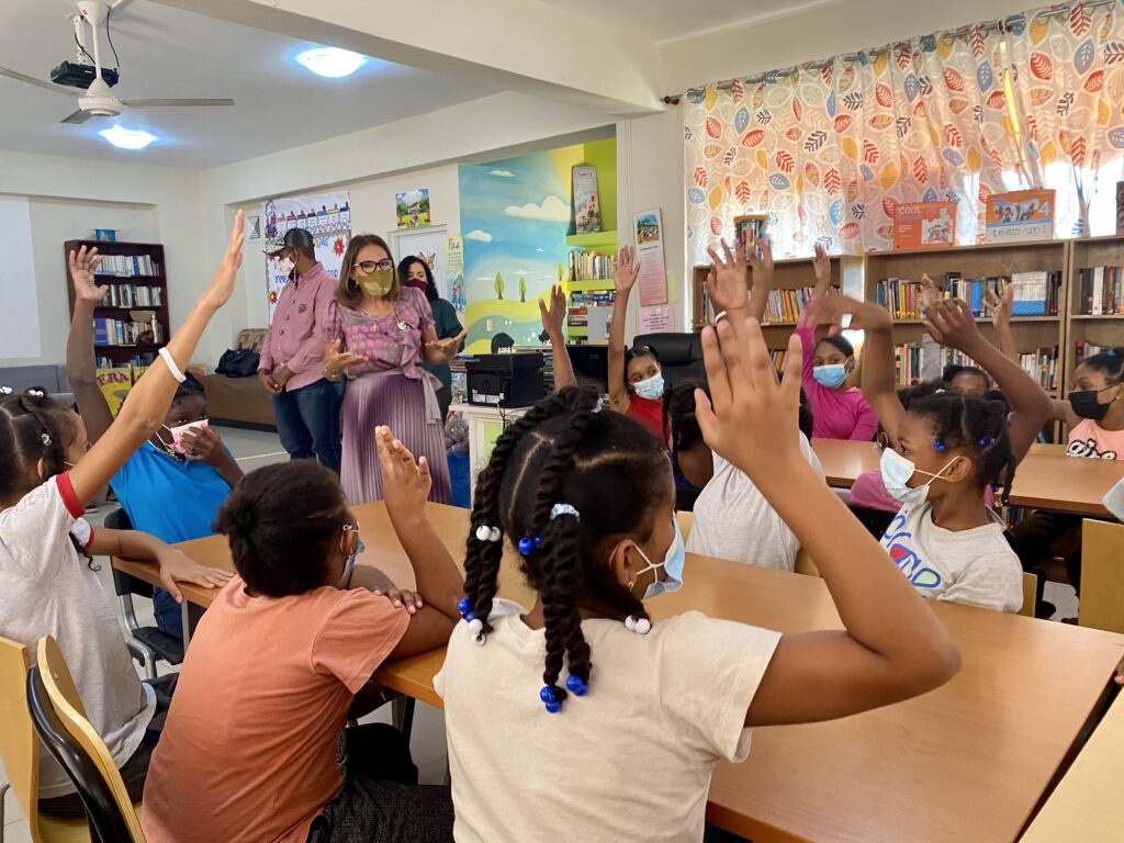 De igual manera siguió la entrega de maquinas, hasta el Municipio San Antonio de Guerra donde el INMODA RD. Visitó el Politécnico Eugenio de Jesús Marcano Fondeur para sorprender a cinco estudiantes meritorias que sueñan con ser grandes diseñadoras de modas de nuestro país.