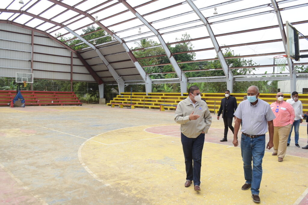 Entre los municipios cuyas obras están en proceso de reparación está Villa Riva, donde se realiza el remozamiento de los baños, sistema de agua potable, manteniendo de estructura metálica, gradas e instalaciones de luces led en su polideportivo.