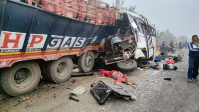 NUEVA DELHI, 5 ene (Xinhua) -- Al menos 16 personas murieron y otras 24 resultaron heridas el miércoles después de que un autobús chocara con un camión cargado de bombonas de gas de cocina en el estado de Jharkhand, en el este de la India, dijeron las autoridades. El accidente tuvo lugar en la carretera Govindpur-Sahibganj en la aldea de Paderkola, en el distrito de Pakur, a unos 351 kilómetros al noreste de Ranchi, la capital de Jharkhand. Los heridos están recibiendo tratamiento médico en hospitales, según detalló Ramdev Paswan, un cirujano civil de Pakur. La Policía dijo que los rescatistas tuvieron que usar cortadoras para sacar a las personas que habían quedado atrapadas entre el amasijo de hierros del autobús siniestrado. Las investigaciones preliminares revelaron que la conducción imprudente y la mala visibilidad causada por la densa niebla en el área podrían ser las causas del incidente.