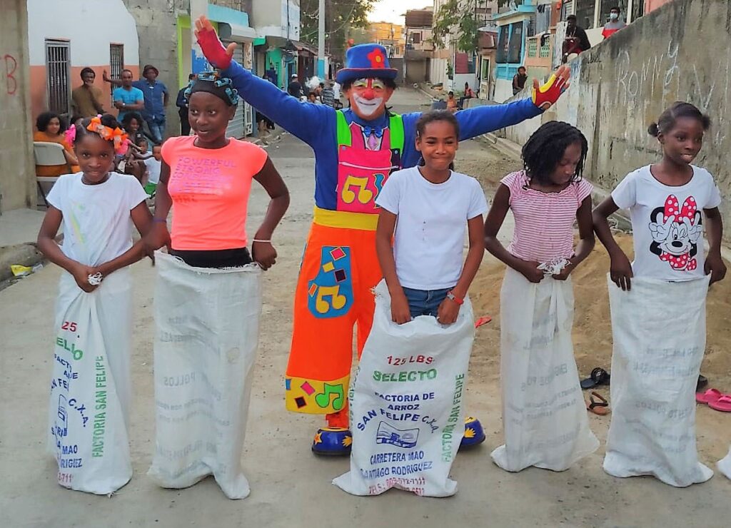 El recorrido culminó en La Cambronal con un espectáculo del famoso payaso Pin Pin, que personifica el artista profesional, Rafael -Rafucho- Baret, quien es uno de los coordinadores de Los Joyeros Unidos de Nueva York en Santiago, allí los infantes presentes recibieron sus juguetes de “Niño Jesús”, donados por la histórica jugadora de softbol, Lupe Álvarez, miembro de esa entidad.