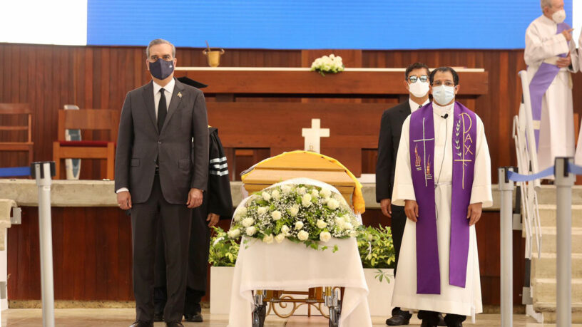 Santiago, 24 de enero, 2022.- El presidente Luis Abinader acudió este lunes a las honras fúnebres de monseñor Agripino Núñez Collado, tras su fallecimiento el pasado sábado 22 de enero.