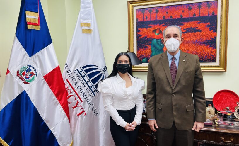 Santo Domingo, R. D., 11 de febrero, 2022.- El ministro de Educación Superior, Ciencia y Tecnología, doctor Franklin García Fermín, recibió en su despacho a la ingeniera aeroespacial dominicana, Scarlin Hernández, con el objetivo de desarrollar estrategias para fomentar el estudio de las ciencias en los alumnos dominicanos.García Fermín resaltó que el Ministerio de Educación Superior, Ciencia y Tecnología (MESCYT) se distingue por la visita, de quien calificó como “una científica joven probada” que pone en alto el nombre de la República Dominicana en los Estados Unidos.