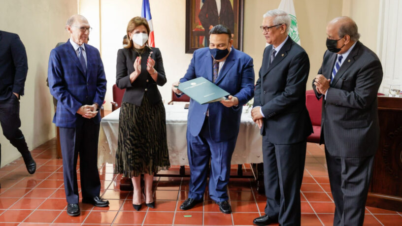 Santo Domingo, R. D., 16 de febrero, 2022.- Con la presencia de la vicepresidenta de la República, Raquel Peña, el escritor y embajador dominicano Miguel Reyes Sánchez ingresó este miércoles como miembro de número de la Academia Dominicana de la Historia.
