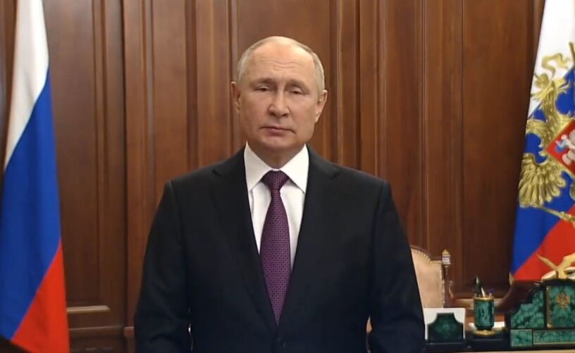 “Las Fuerzas Armadas son una garantía fiable de la seguridad nacional, de la vida pacífica y tranquila de nuestros ciudadanos y del desarrollo estable y progresivo de Rusia”, declaró el mandatario en un mensaje de video divulgado por el Kremlin.