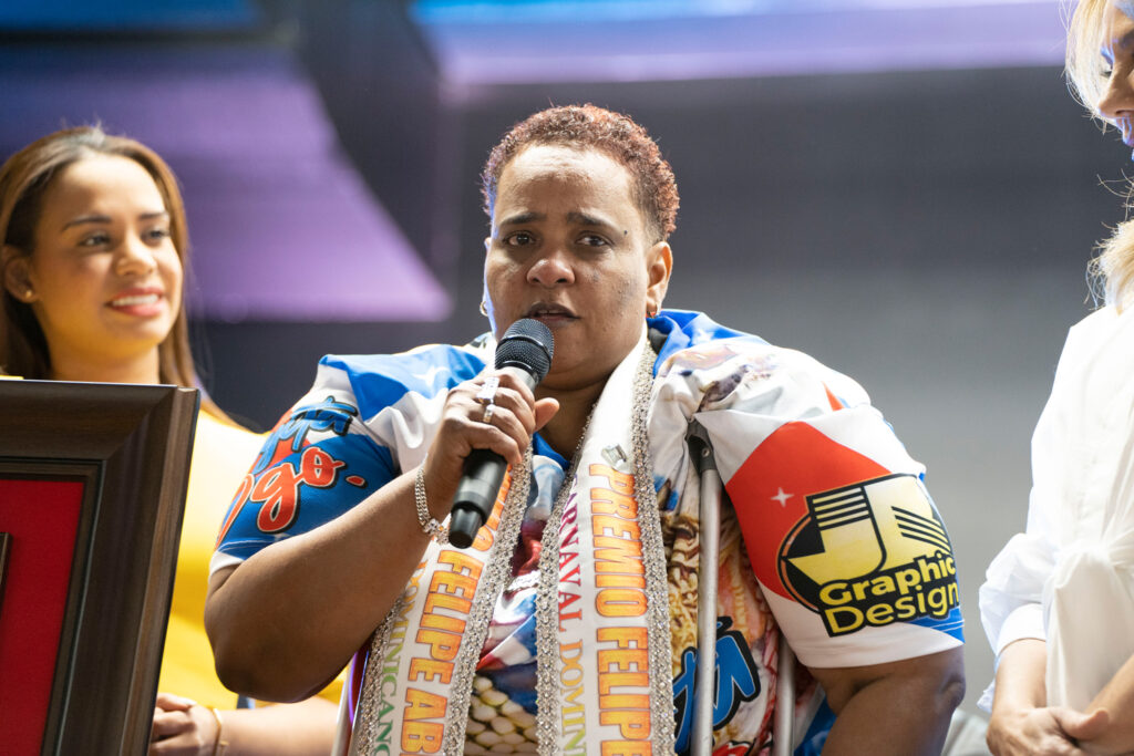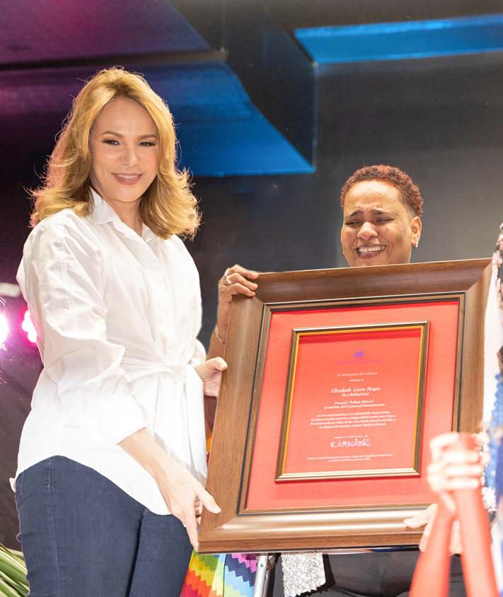 La carnavalera fue galardonada con el Premio Felipe Abreu 2022, con el que el Ministerio de Cultura agradece el tesón con el que desde niña se ha vinculado con el colorido y la alegría del carnaval dominicano