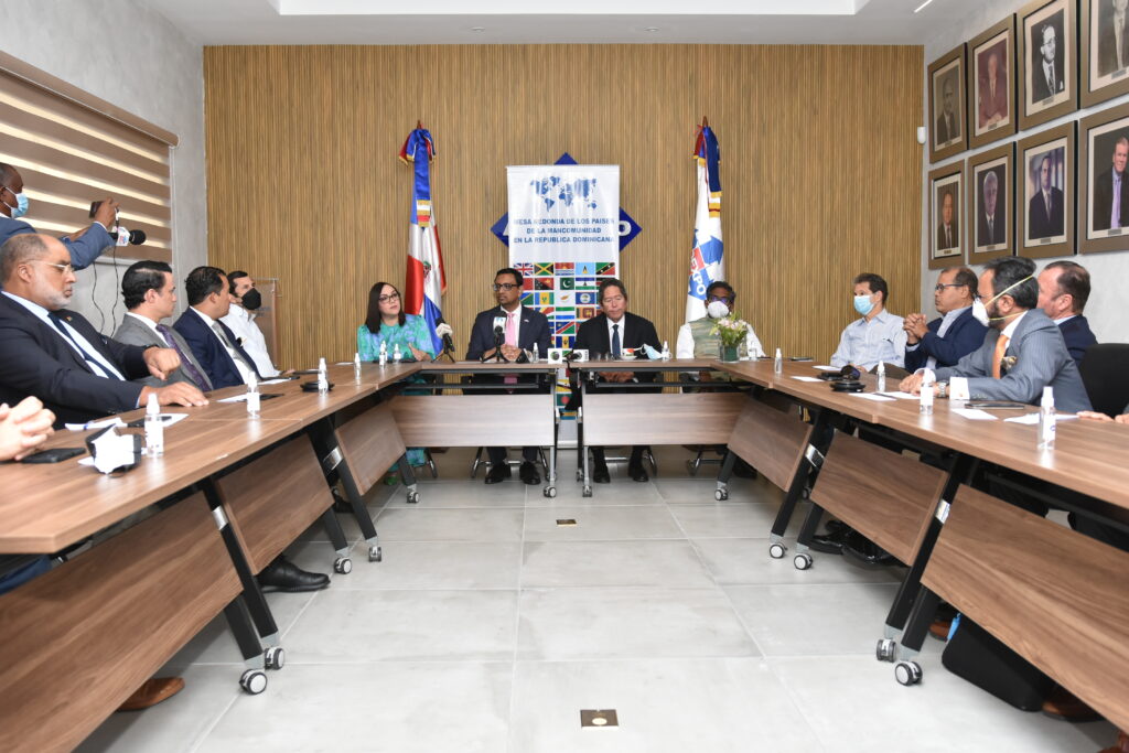 Barceló, presidenta de Barrick Pueblo Viejo; y los presidentes de las cámaras de comercio Gustavo De Hostos, de Canadá; Dharmendra Basita, de la India; Edmundo Gil, de Trinidad y Tobago; Juan José Melo, de Jamaica; Luís Jorge, de Guyana, y Amaury Vásquez, directivo de la británica.