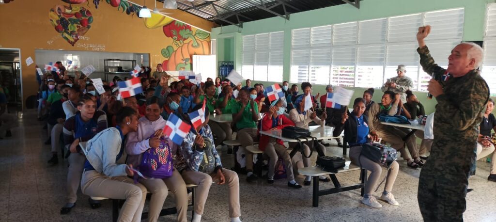 SAN JUAN DE LA MAGUANA., RD-El Programa educativo “La Patria Nace en la Frontera”, realizó diversas actividades en el Politécnico “San Miguel”, de esta ciudad, con el objetivo de contribuir a la formación de cientos de jóvenes y despertar su conciencia sobre la importancia del rol que deben cumplir en el rescate de los valores patrióticos y la identidad nacional, tan necesario para defender la soberanía de la nación.