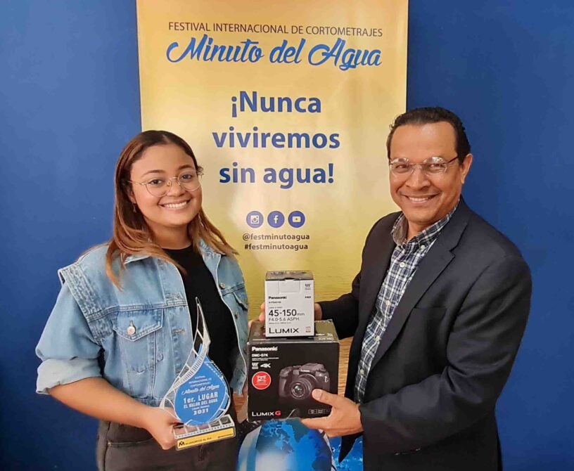 Libeth Ramírez, ganadora del Primer Lugar con el cortometraje “El valor del Agua”; Isabel Ovalle, segundo lugar con el corto “Vida” y Hansel Espinosa en tercer lugar con el corto “Dama del río” recibieron de manera individual un video kit Panasonic Lumix G, con resolución 4K con todos sus accesorios para que puedan seguir produciendo más audiovisuales.