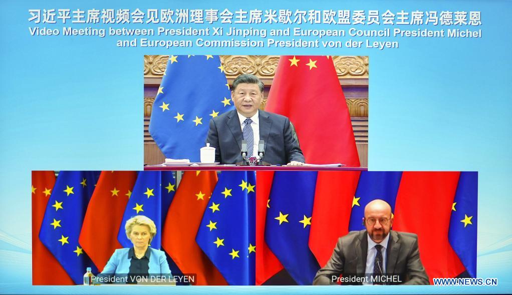 | BEIJING, 1 abril, 2022 (Xinhua) — El presidente chino, Xi Jinping, se reúne con el presidente del Consejo Europeo, Charles Michel y la presidenta de la Comisión Europea, Ursula von der Leyen, a través de un enlace de vídeo, en Beijing, capital de China, el 1 de abril de 2022. (Xinhua/Yin Bogu) BEIJING, 1 abr (Xinhua) — El presidente chino, Xi Jinping, se reunió a través de videoenlace con el presidente del Consejo Europeo, Charles Michel, y la presidenta de la Comisión Europea, Ursula von der Leyen, desde Beijing la noche del 1 de abril. El presidente Xi recordó que hace ocho años hizo una sugerencia para que China y Europa impulsaran una asociación China-Unión Europea (UE) en pro de la paz, el crecimiento, la reforma y la civilización. La visión de China permanece sin cambio. En todo caso, se ha vuelto más pertinente en las circunstancias actuales. China y la UE comparten amplios intereses comunes y una sólida base de cooperación. Al señalar la coherencia y continuidad de la política de China hacia la UE, el presidente Xi pidió a la UE formar su propia percepción de China, adoptar una política independiente sobre China, y trabajar con China para promover el crecimiento constante y sostenido de las relaciones entre China y la UE y añadir factores estabilizadores a un mundo turbulento. El presidente Xi subrayó que China y la UE deben actuar como dos importantes fuerzas defensoras de la paz mundial, y compensar las incertidumbres en el panorama internacional con la estabilidad de las relaciones China-UE. Las dos partes necesitan asumir el liderazgo en la defensa del sistema internacional con la Organización de las Naciones Unidas (ONU) como núcleo, el orden internacional apuntalado por el derecho internacional, y las normas básicas que rigen las relaciones internacionales basadas en los propósitos y los principios de la Carta de la ONU, y rechazar conjuntamente la resurrección de la mentalidad de bloque rival y oponerse a los intentos de una nueva Guerra Fría, con la intención de mantener la paz y la estabilidad mundiales. El presidente Xi indicó que China y la UE deben actuar como dos grandes mercados que promueven el desarrollo compartido, y profundizar la globalización económica a través de la cooperación abierta. China permanecerá comprometida con la profundización de la reforma y una mayor apertura. China da la bienvenida a la inversión de negocios europeos y espera que la UE proporcione un ambiente justo, transparente y no discriminatorio para la inversión y el desarrollo de empresas chinas en Europa. Las dos partes necesitan buscar una mayor sinergia entre sus estrategias de desarrollo y explorar una mayor complementariedad entre la nueva concepción y la nueva configuración del desarrollo de China y la política de comercio de la UE para la autonomía estratégica abierta. El presidente Xi subrayó que China y la UE deben actuar como dos grandes civilizaciones que promueven el progreso humano, y hacer frente a los desafíos globales a través de la solidaridad y la colaboración. Las dos partes necesitan seguir el verdadero multilateralismo, defender una visión de gobernanza global caracterizada por el principio de consulta amplia, contribución conjunta y beneficios compartidos, continuar encabezando la cooperación internacional sobre cambio climático y biodiversidad, y trabajar juntos para derrotar a la COVID-19. China da la bienvenida al apoyo y la participación de la UE en la Iniciativa para el Desarrollo Global.El presidente Michel y la presidenta von der Leyen dijeron que China es una fuerza importante en el mundo. La UE concede gran importancia a la posición y al papel internacionales de China, así como al desarrollo de relaciones con China. China y la UE disfrutan de una relación duradera de beneficio mutuo. Ambas partes están comprometidas a defender la paz y el multilateralismo. En la actual situación internacional, es vital para la UE y China incrementar el diálogo y la cooperación. La parte de la UE reafirmó su compromiso con el principio de una sola China y expresó su deseo de intercambios francos con China para mantener un buen impulso de las relaciones UE-China. También expresaron su disposición para seguir profundizando la cooperación con China en áreas como economía, comercio, inversión, energía y desarrollo ecológico, para hacer frente conjuntamente a los desafíos globales como la COVID-19, el cambio climático y la protección de la biodiversidad y promover la paz mundial, el crecimiento económico y la prosperidad común. La UE proporcionará apoyo y cooperación para el éxito de la segunda parte de la COP15 en China.Las dos partes intercambiaron opiniones sobre la situación en Ucrania. Los líderes de la UE compartieron sus opiniones y propuestas sobre la crisis ucraniana. El presidente Xi hizo hincapié en que China considera profundamente lamentable que la situación en Ucrania haya llegado a la situación actual. La posición de China sobre la cuestión ucraniana es coherente y clara. China siempre está del lado de la paz y saca su conclusión de forma independiente basada en los méritos de cada asunto. China pide que se defienda el derecho internacional y las normas universalmente reconocidas que rigen las relaciones internacionales, actúa de acuerdo con los propósitos y principios de la Carta de la ONU y defiende la visión de seguridad común, integral, cooperativa y sostenible. El presidente Xi compartió su opinión sobre cómo resolver la crisis de Ucrania bajo las actuales circunstancias:En primer lugar, promover las conversaciones de paz. China apoya los esfuerzos de la UE hacia una solución política de la cuestión de Ucrania, y ha estado alentando las conversaciones de paz a su propia manera. Las conversaciones de paz son la única forma viable de evitar una escalada de las tensiones. La comunidad internacional debe seguir creando las condiciones y el entorno favorables par