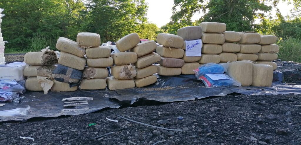 Correspondían a cocaína 770.267 kilogramos, equivalentes a 75.85%, mientras que a marihuana 244.53 kilogramos, que representan el 24.08%.