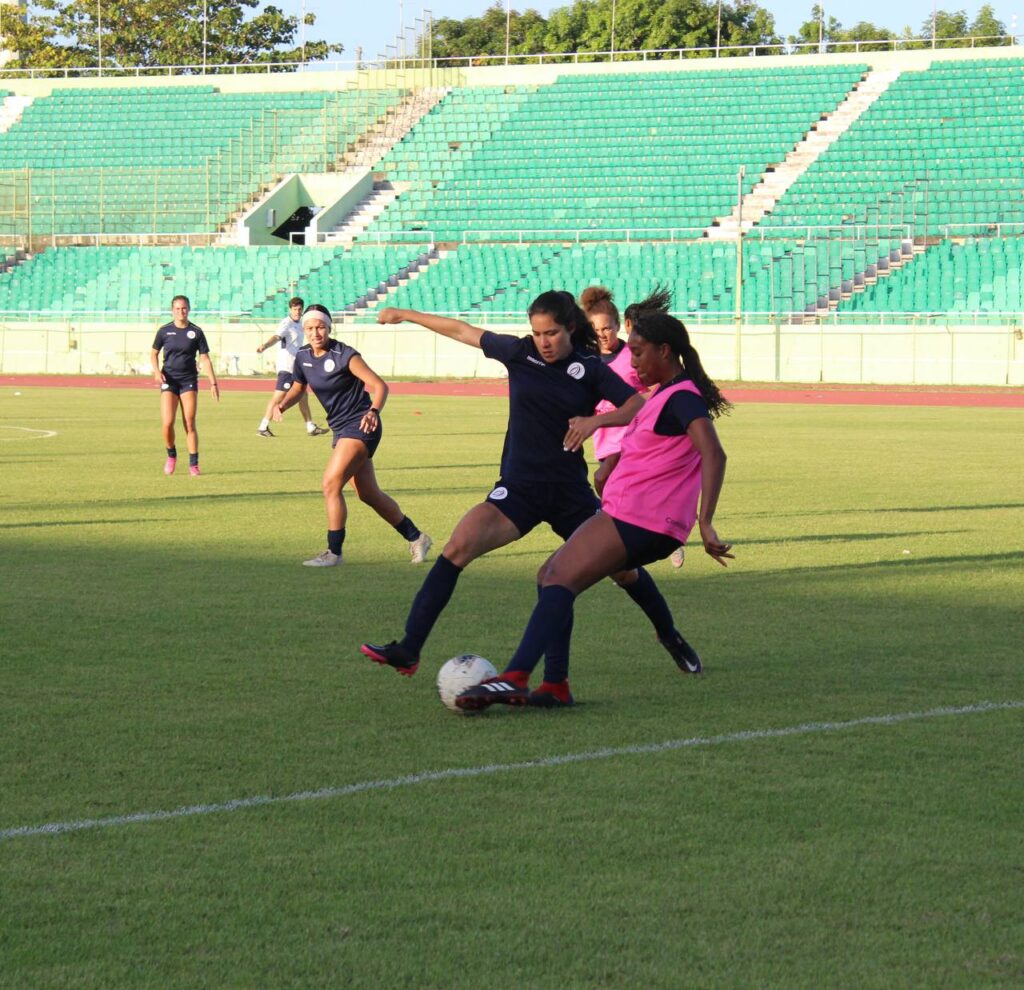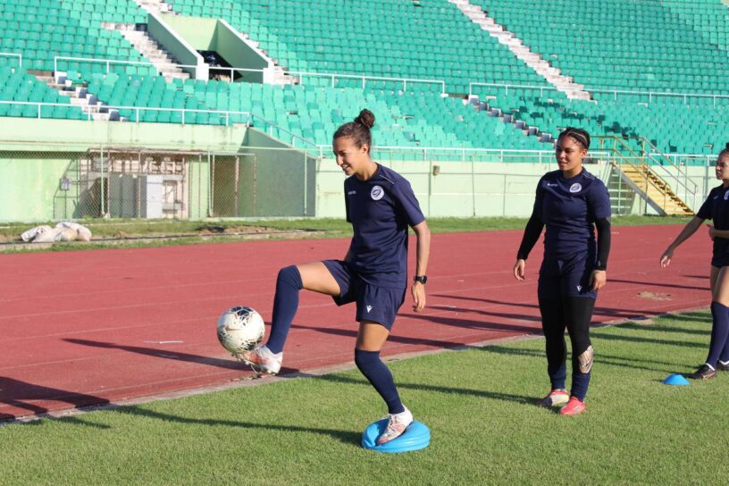 El elenco patrio desarrolló una sesión de gimnasio este miércoles por la mañana y por la tarde pisó el gramado del Estadio Félix Sánchez con las 22 futbolistas que fueron convocadas tanto para enfrentar a Bermudas el viernes en casa, como a Jamaica el próximo martes en kingston.