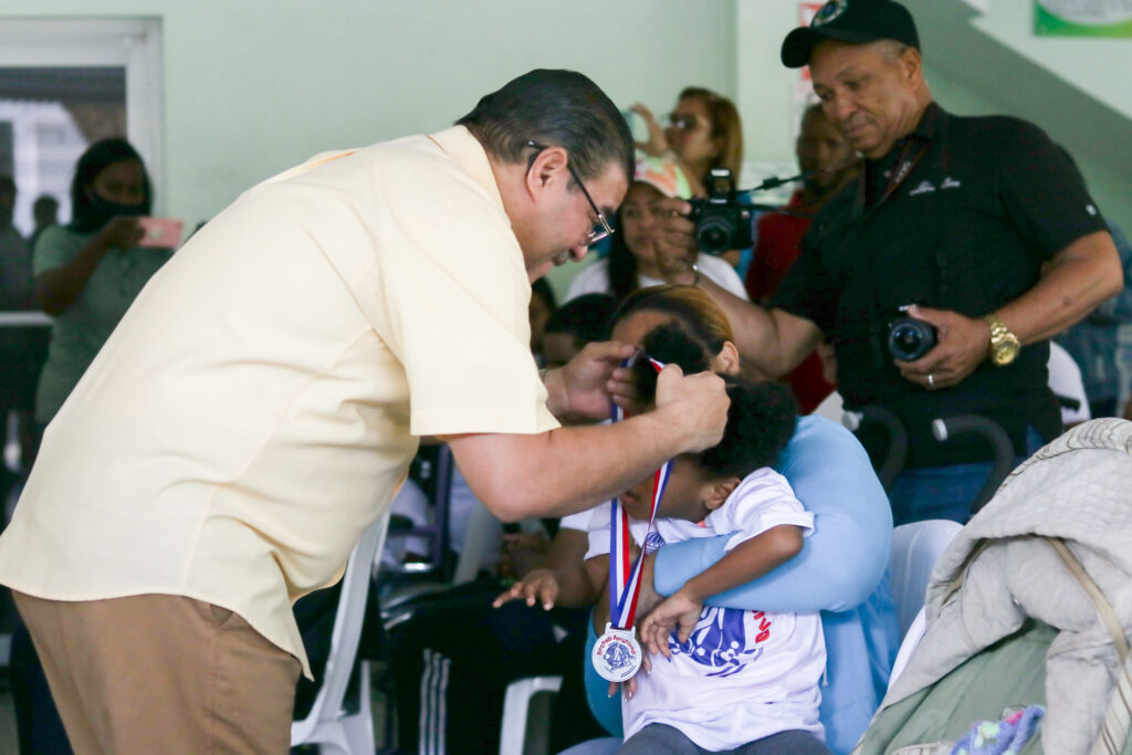 Felicitó a la directora de la Escuela y a todo su personal por el «excelente trabajo» que vienen realizando en ese centro que cumplirá en este mes su 65 aniversario.“Hoy ha sido el día más importante que he vivido como dirigente deportivo en mi vida; estar al lado de estos niños y jóvenes, por eso puedo asegurar que estamos aquí como un soldado raso, sin quitarle protagonismo a nadie”, afirmó Camacho.“Desde hoy la suerte de cada uno de ustedes va a cambiar, con orgullo he premiado a grandes campeones, pero hoy mi mayor orgullo es estar a su lado, porque están luchando por la vida, y eso no tiene precio, por eso les profeso mis respetos”, enfatizó el ministro.