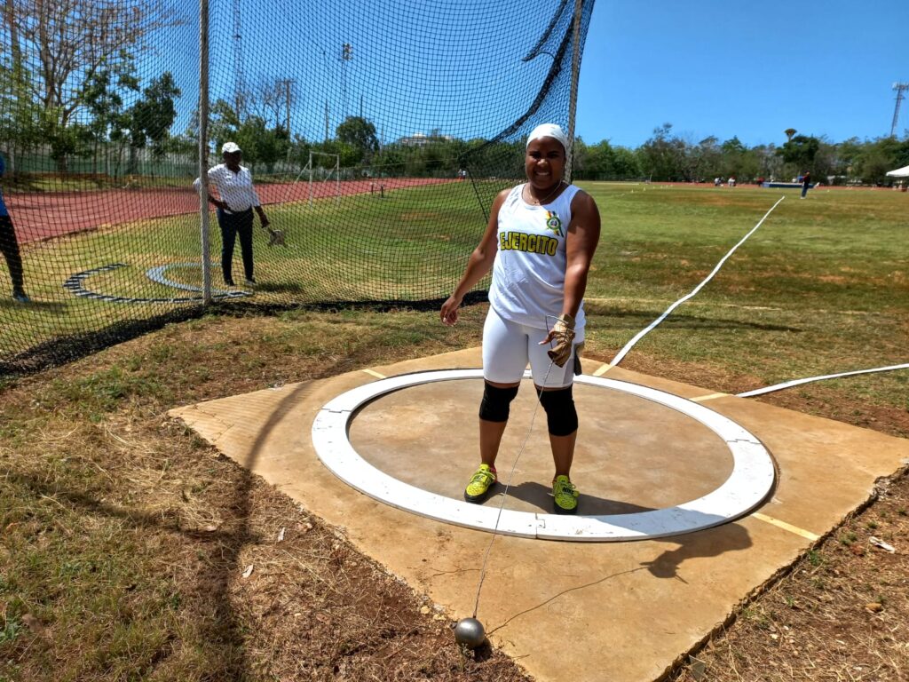 SANTO DOMINGO, RD.- La atleta Juana De Aza conquistó la medalla de oro en el lanzamiento del martillo en la jornada inicial del atletismo correspondiente a los 51 Juegos Deportivos Militares de las Fuerzas Armadas y la Policía Nacional.