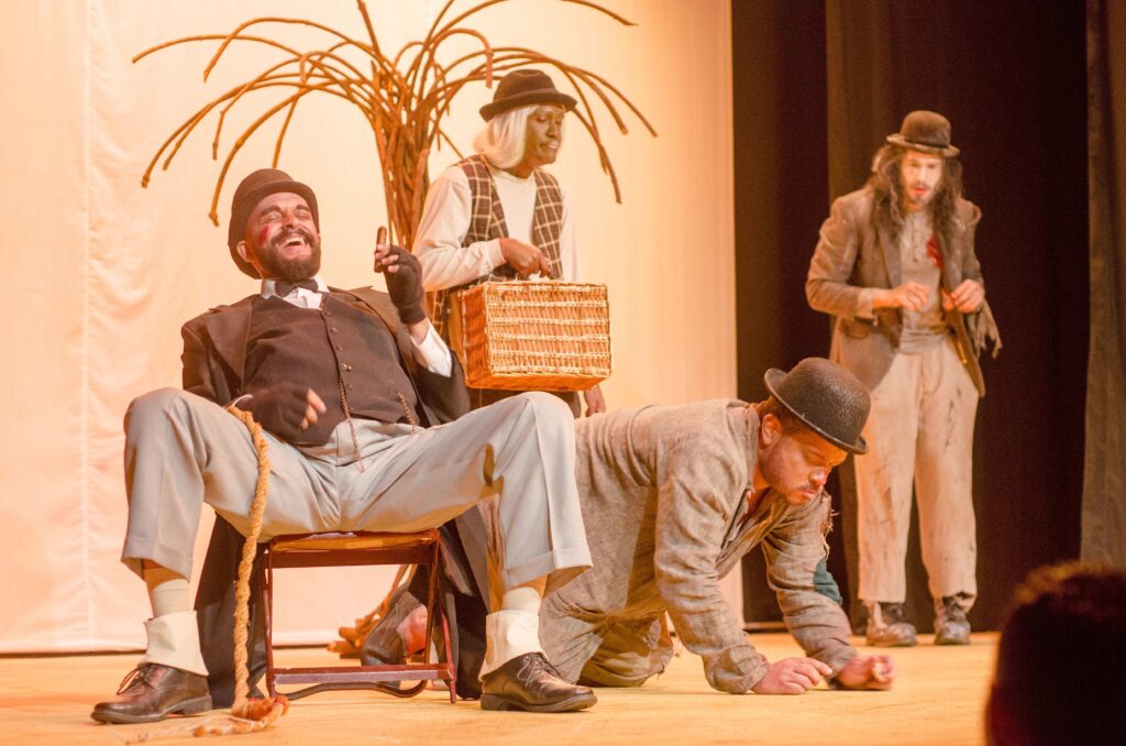 Esperando a Godot”, una pieza teatral producida por Exprésate Dominicano, con la dirección de Manuel Chapuseaux, cuenta con las actuaciones de Patricio León, Pepe Sierra, Canek Denis, Noel Ventura y Josué Hirujo.