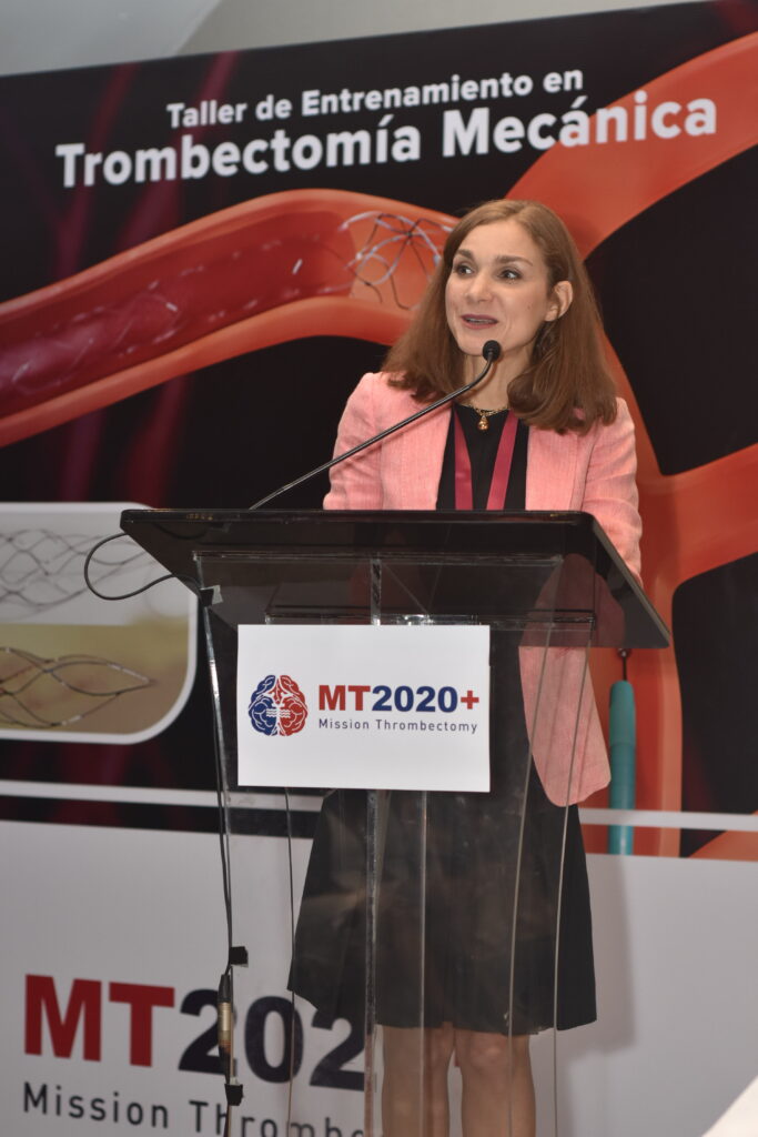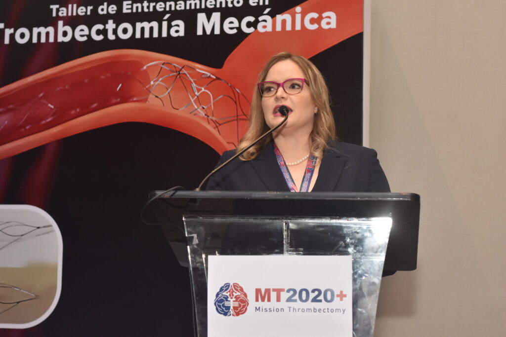 La especialista intervino en el inicio del primer entrenamiento en la región sobre Trombectomía Mecánica, un procedimiento que remueve los coágulos provocados por los accidentes cerebrovasculares (ACV), restaura el flujo sanguíneo y salva el tejido cerebral en riesgo de morir.