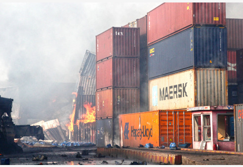 Según información preliminar, el incendio ocurrió en uno de los contenedores cargados de químicos.
