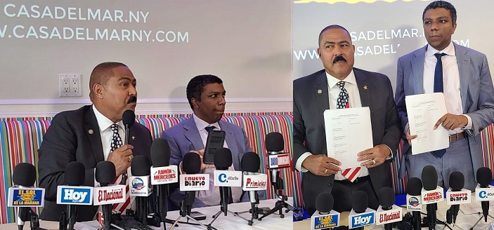 Polanco, postulado candidato a diputado por el PLD en la circunscripción 1 en USA, durante una concurrida rueda de prensa en El Bronx mostró una maleta llena de documentos de los que dijo tener como pruebas del citado fraude en su contra durante las elecciones pasadas.