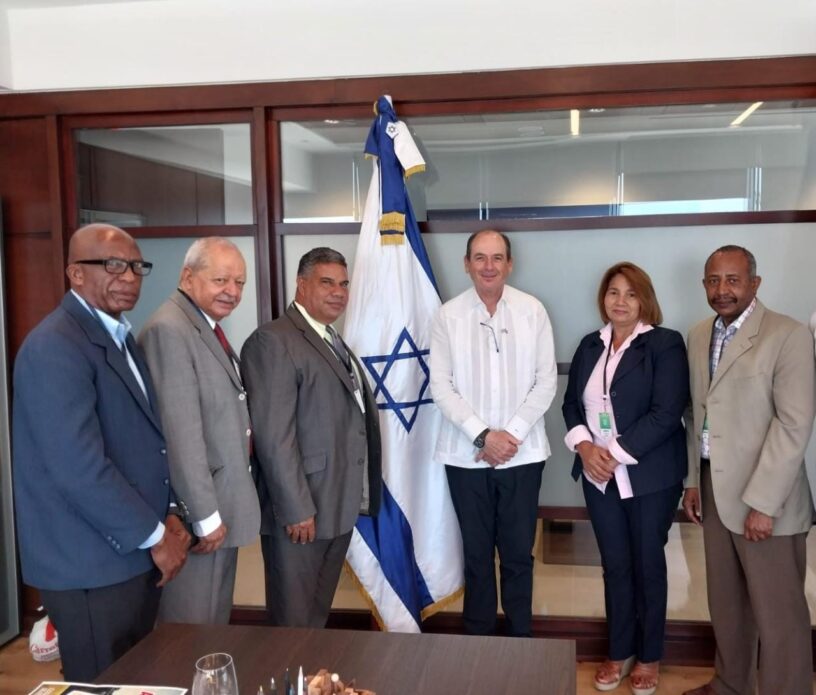 El embajador Biran, acompañado por la Coordinadora de Cooperación Internacional de la embajada de Israel en el país, Judany Álvarez, recibió en su despacho a los representantes de la directiva de ADEJA, encabezados por Cándida Sosa, presidenta de la asociación, acompañado por el pasado presidente inmediato Rafael Montero, el vicepresidente Bernardo Santo, el Secretario de Relaciones Internacionales, Víctor Peguero, y el Secretario de Relaciones Públicas de ADEJA, Rodolfo Espinal.