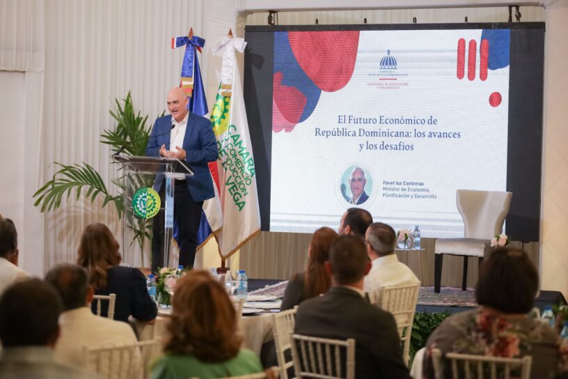 El ministro de Economía destaca, durante una conferencia para la Cámara de Comercio y Producción de La Vega, los desafíos de reducir la tasa de desempleo, aumentar la ocupación formal, bajar la inflación y reducir la tasa de pobreza.
