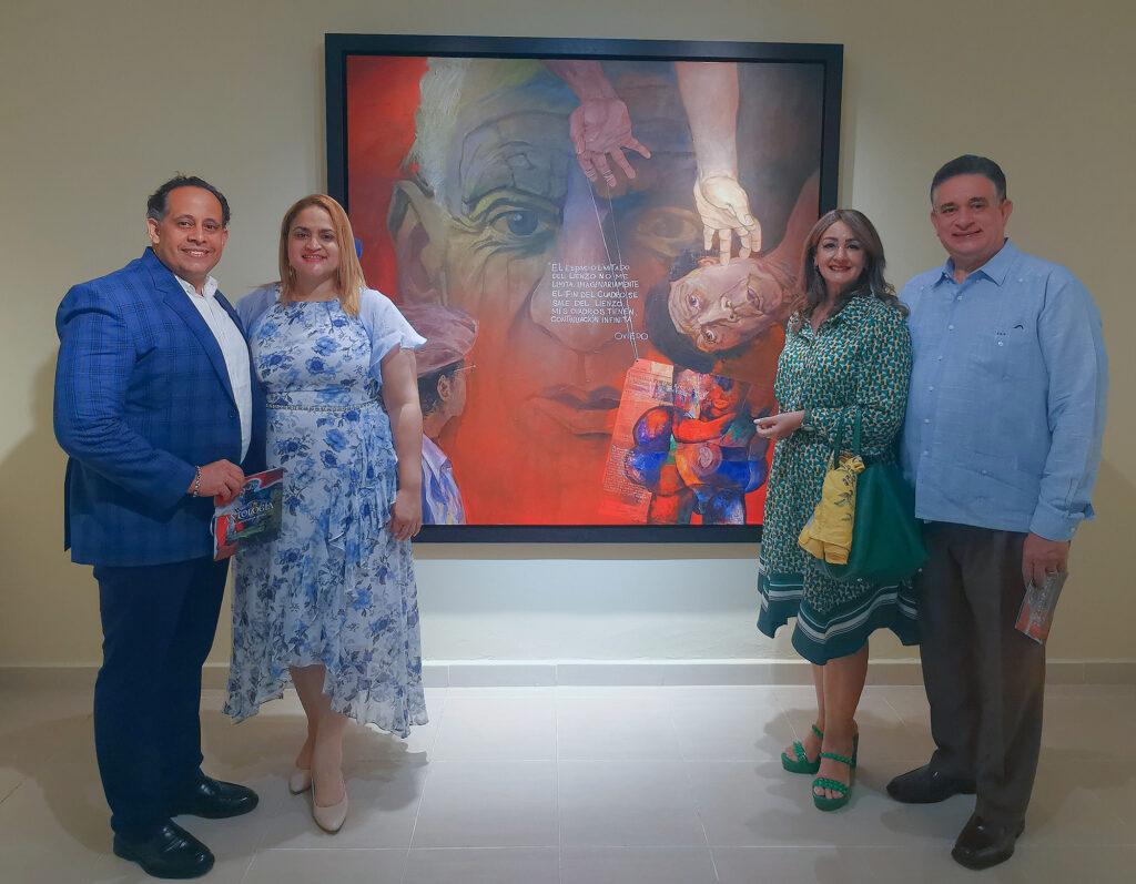 Omar Molina y su esposa, Indhira Santana de Molina; Fernando Báez Guerrero, coleccionista de las obras del artista, y su esposa, Nancy Tavárez de Báez.