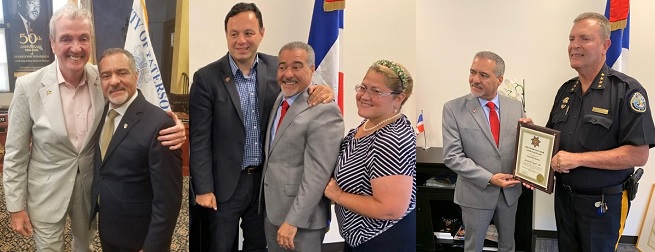PATERSON- Nueva Jersey.- El cónsul dominicano en este Estado sostuvo un encuentro de acercamiento con las principales autoridades, actividad durante la cual recibió dos placas de reconocimiento.
