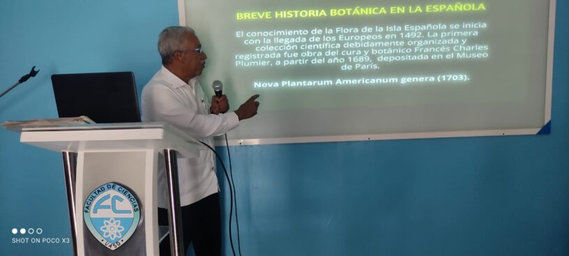Santo Domingo, R. D., 25 de octubre, 2022.- En el marco de las actividades conmemorativas del 484 aniversario de la Universidad Autónoma de Santo Domingo (UASD), la Escuela de Biología de la Facultad de Ciencias organizó una conferencia titulada ´´Conservación de la Flora Dominicana´´, con el objetivo de incentivar el cuidado y protección de nuestros árboles. La conferencia fue dictada por el biólogo y maestro Ricardo García García.