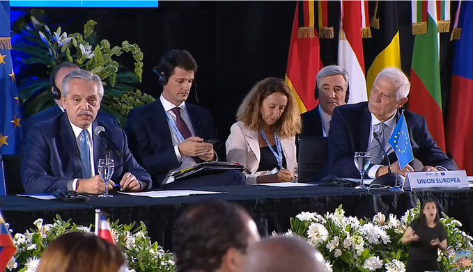 Al intervenir en la III Cumbre de Ministros de Relaciones Exteriores de la Comunidad de Estados Latinoamericanos y Caribeños (Celac) y la UE, el mandatario instó a defender la democracia y combatir los discursos de odio.