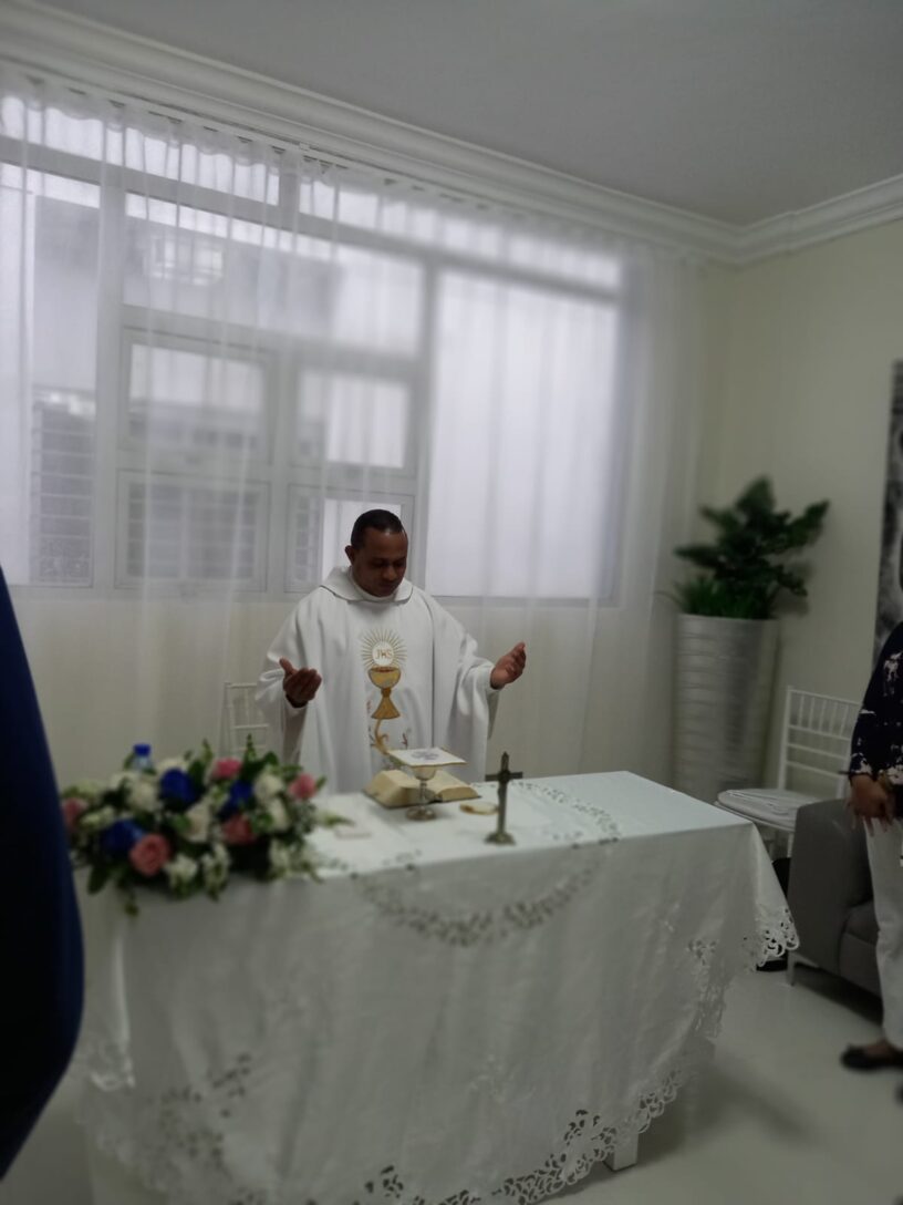 Momentos en que el sacerdote sacerdote Willy Rosario oficia la misa en CIPLA