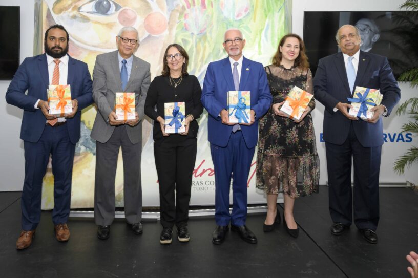 Santo Domingo, R. D., 2 de octubre, 2022.- En su 81 aniversario, el Banco de Reservas y el Archivo General de la Nación pusieron en circulación los primeros cuatro tomos, de un total de diez que integrarán la colección Pedro Mir. Obras completas, una compilación de prosa, poesía, narrativa, periodismo e historia.