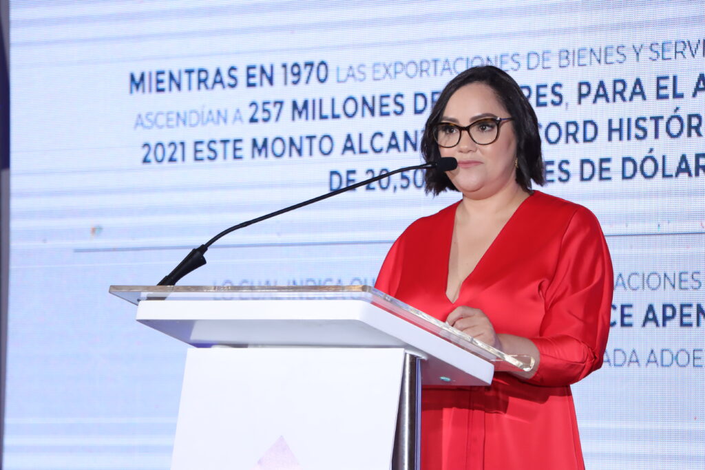 La presidenta de la entidad, Elizabeth Mena, destacó que 1 de 5 empleos en el país está vinculado con las exportaciones, y de 7 de cada 100 pesos que recibe el Estado por concepto de ingresos corrientes provienen de ese sector.