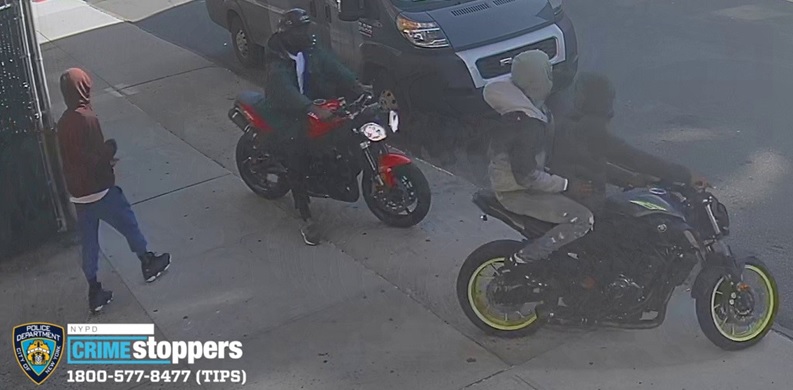 Los asaltantes, no identificados, se describen como cuatro hombres de aproximadamente 16 a 18 años de edad, y se les ve conduciendo dos motocicletas (una roja y negra y una negra y amarilla). La uniformada despachó fotos de ellos.