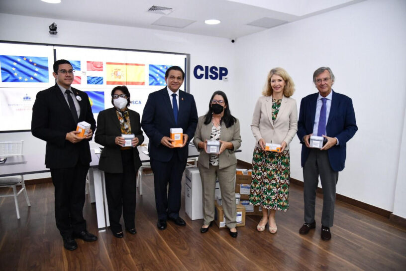 En el marco del Proyecto de cooperación delegada “Apoyo de Salud Pública al Plan de Contingencia COVID de la Región SICA”, se desarrolló el acto de entrega oficial del donativo de insumos de protección personal, reactivos e insumos de laboratorio de biología molecular COVID-19 al Ministerio de Salud de República Dominicana. El proyecto es posible gracias a los fondos de la Unión Europea y la AECID, a través del Fondo España SICA.