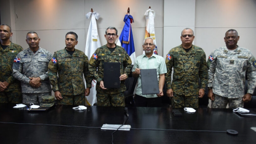 Santo Domingo, R. D., 14 de diciembre, 2022.- El Ministerio de Educación (MINERD) y el de Defensa (MIDE) firmaron un acuerdo que busca fortalecer la formación en valores morales, patriotismo y civismo de los estudiantes en los diferentes niveles y modalidades de los centros educativos reconocidos por el MINERD y que están bajo la dirección de los militares.