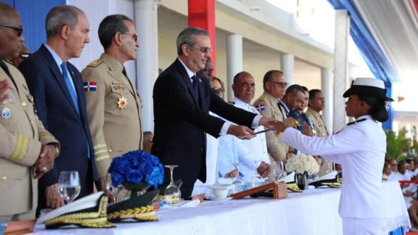 El mandatario tomó el juramento y entregó el sable de mando a los 31 nuevos oficiales subalternos graduados como licenciados en Ciencias Navales y Oficiales del Cuerpo de Comando, título reconocido por el sistema de educación superior del país a través del Ministerio de Educación Superior, Ciencia y Tecnología (MESCyT).