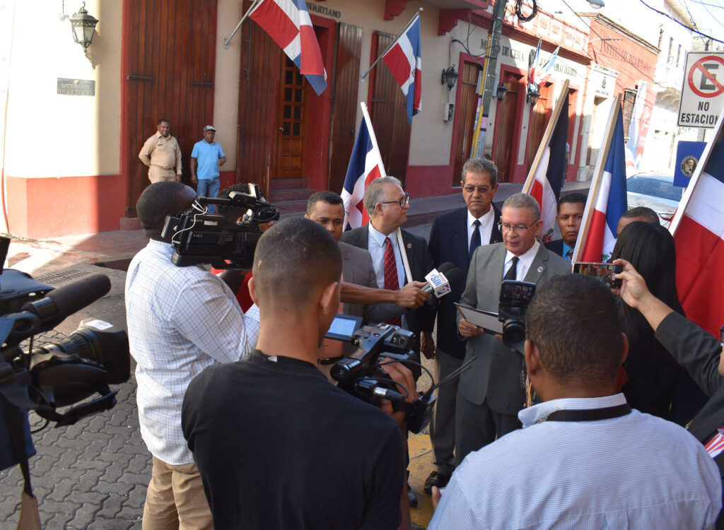 Foto 2:Directivos del Instituto Duartiano conversan con medios informativos.