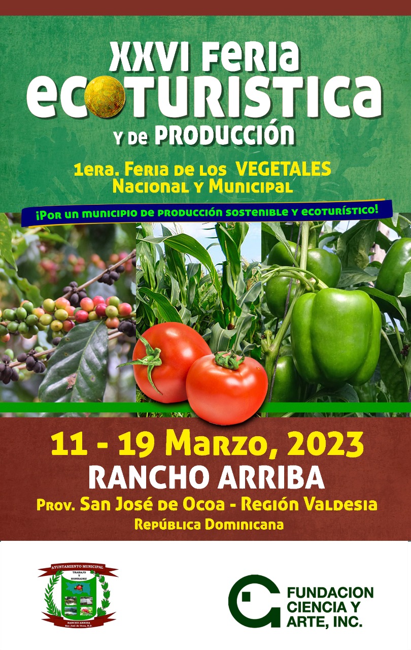 Santo Domingo, RD.- Con el lema “Por un municipio de producción sostenible y ecoturístico” La Fundación Ciencia y Arte (FCA) y la Alcaldía de Rancho Arriba, anunciaron la Primera Feria Municipal y Nacional de los Vegetales dentro de la XXVI Feria Ecoturística y de Producción, que se celebrará desde el sábado 11 al domingo 19 marzo de 2023, en el municipio de Rancho Arriba, San José de Ocoa.