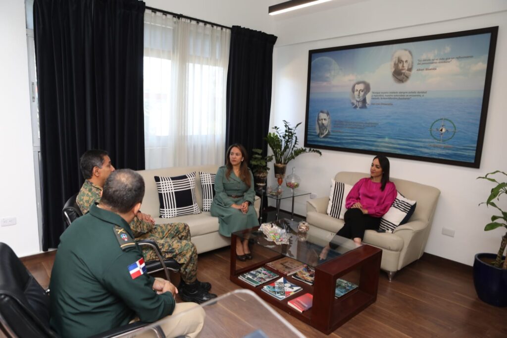 Las panelistas fueron recibidas por el rector del Instituto Superior para la Defensa “General Juan Pablo Duarte y Díez” (INSUDE), General de Brigada Francisco Antonio Ovalle Pichardo, ERD, y por el director de la EGDDHHyDIH, General de Brigada Ambiorix de Jesús Cepeda Hernández, ERD.