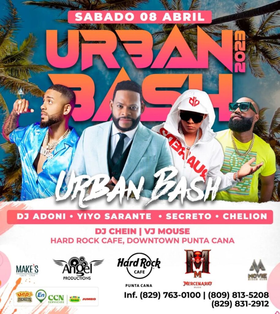 Y es que los amantes de la salsa tendrán en Urban Bash a Yiyo Sarante, al tiempo que los seguidores de la música urbana, a Secreto; de igual forma DJ Adonii con sus mezclas pondrá a bailar a los asistentes con todos los géneros, mientras que la bachata tiene en Chelion a su representante del a noche.