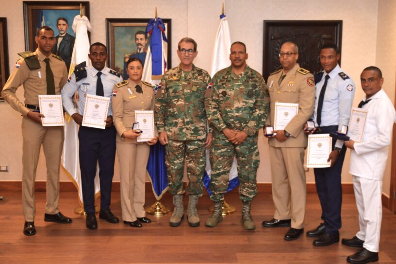 Los condecorados con la «Estrella Dorada» son la teniente coronel Marieny Mejía Beras, ERD, reconocida por el alto mando, tras 22 años de carrera en los deportes y ser medallista de plata en 4×100 femenino y representar a Fuerzas Armadas dominicanas en Brasil. También fueron condecorados el 1er teniente Eimidio Nacires Pérez del Ejército y el sargento Danny Rojas, de la Armada de República Dominicana, quienes se destacaron por dirigir la misión en Brasil y China y obtener medallas de plata nivel internacional, respectivamente.