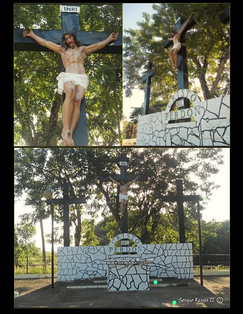 La citada estructura está conformada por un trio de cruces, de las cuales, en la del centro, se destaca una impresionante imagen de Jesús crucificado, en directa alusión e invocación al pedimento al Altísimo en pro de soluciones a los males y necesidades de la gente que convive en estos linderos de la Nación y, por extensión, en auxilio de toda la humanidad.