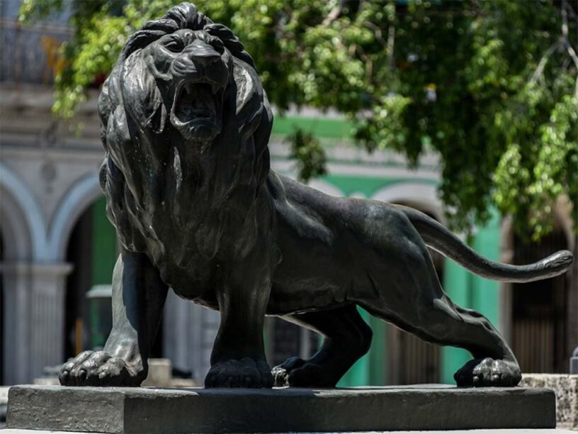 Siempre con mirada agresiva y rugir que se podría escuchar con un poco de imaginación, esos felinos de bronce constituyen escenario propicio para una foto familiar, o simplemente para enmarcarlos en hoteles del derredor como el Parque Central, El Telégrafo o el Sevilla.