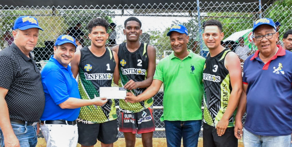En masculino, Los Enfermos de La Vega, con sus jugadores, Álvaro Gutiérrez, Yonci Marte y Carlos Gómez, fueron seguidos por los combinados, la Liga Alberto Agramonte 1, de Moca, con Alexander y Diego Abreu, así como por Domingo Peña y sus compañeros del 3 de ese mismo conjunto, Pedrito Reinoso, Ajerlin de Jesús y Kelvin Abreu.